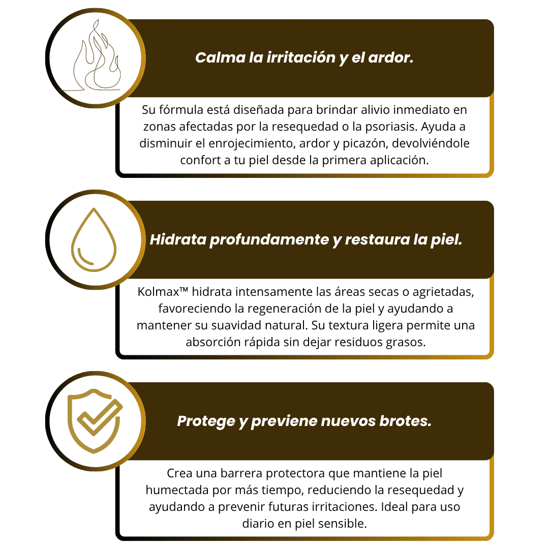 Kolmax™ transforma tu piel en pocos días. Combate la descamación, reduce la inflamación y restaura el brillo natural que habías perdido.